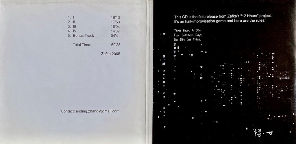 So I started to create my first sound work. I call it the “12 hour” project. Based on my daily recording of the Guangzhou city field recording material, for four consecutive days, three hours a day, improvisation every day, one piece per day.