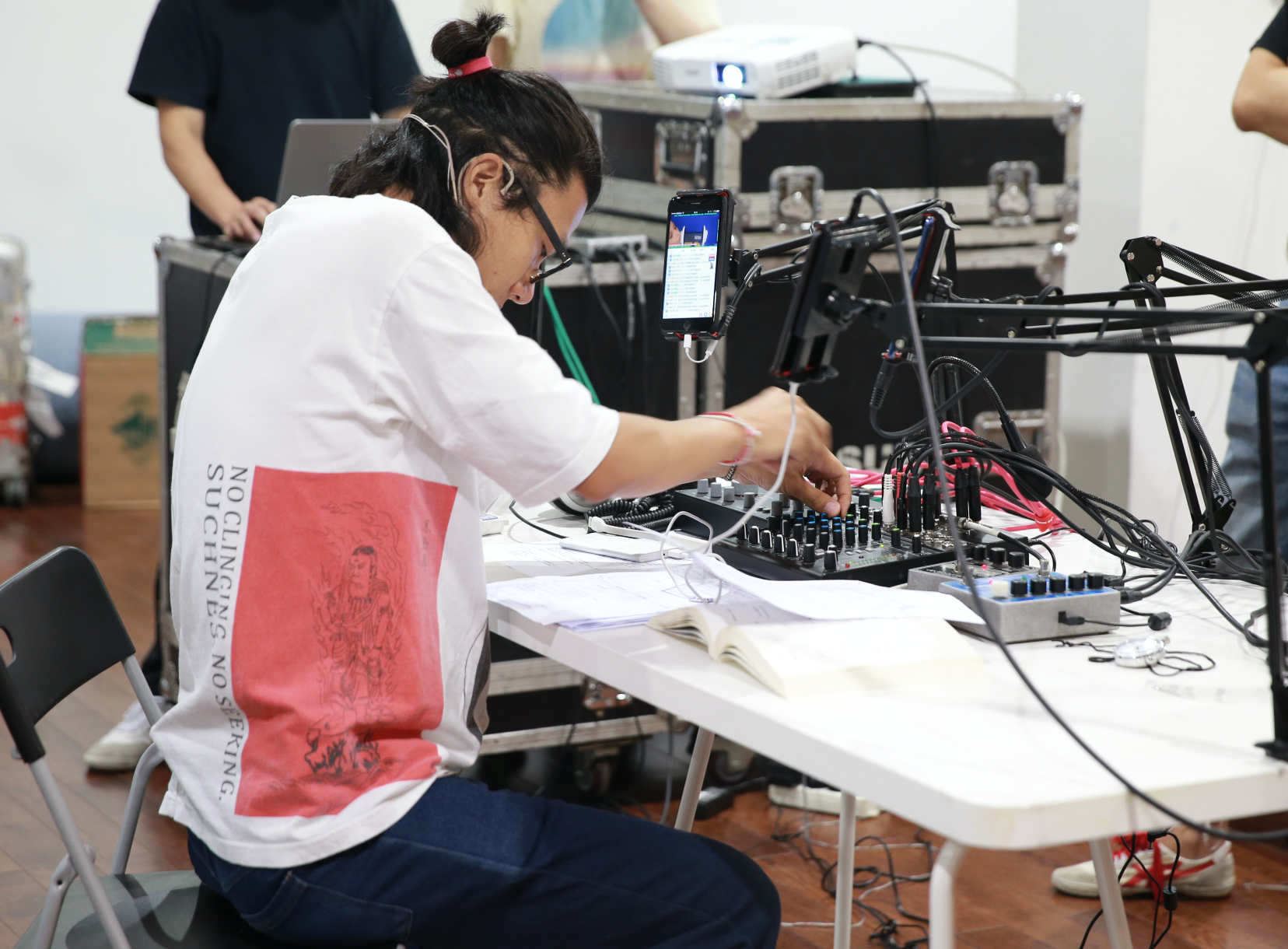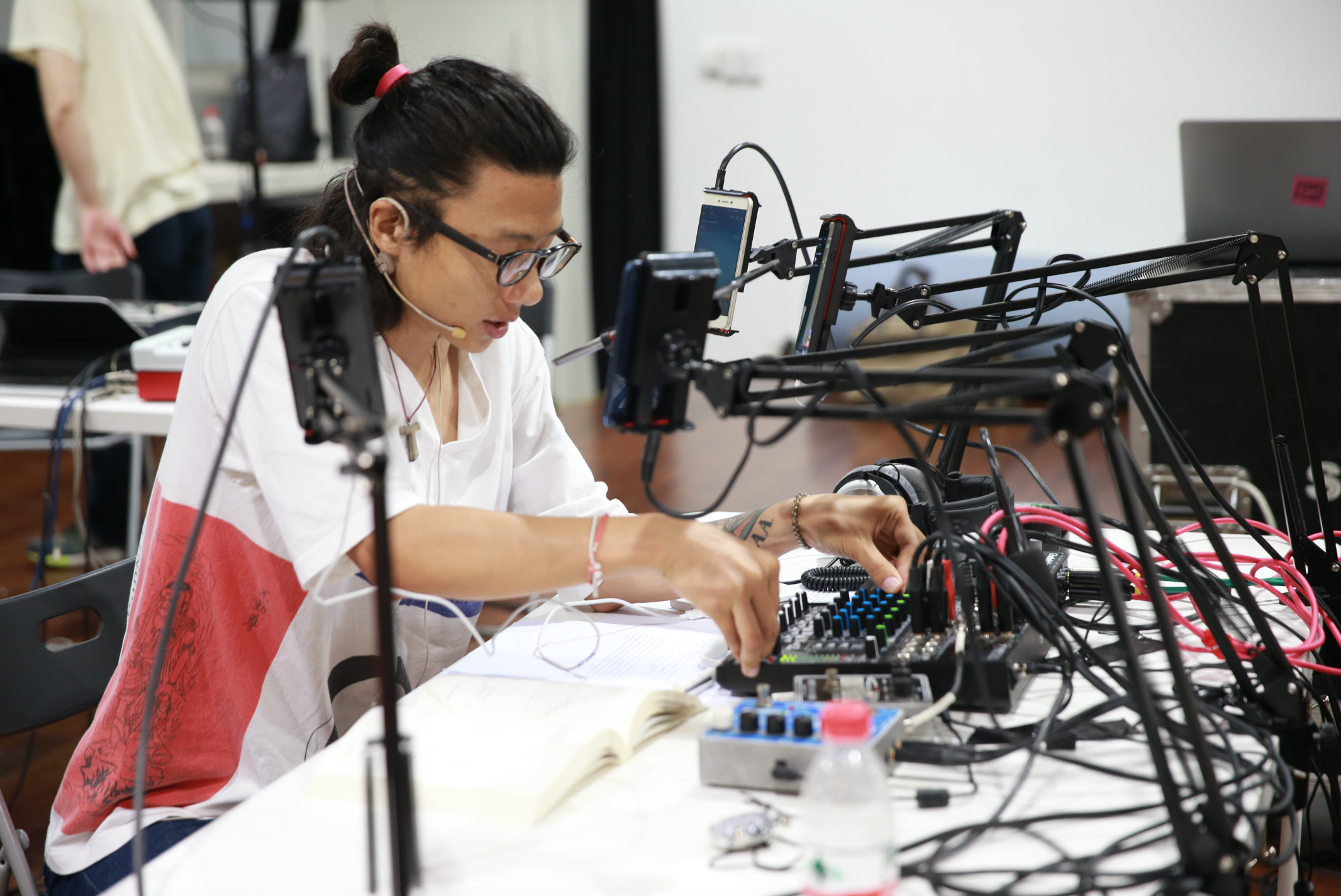 这个项目,设置为五个手机的实时直播装置,以及随之展开的声响剧场表演。表演时通过五个手机,实时即兴混音各个直播平台的声音流,同时对整个演出进行公开音频直播,探讨新社交媒体声音文化下,声音艺术中一些关键概念的重塑。这包括“空间,房间,寂静,有无”的概念。