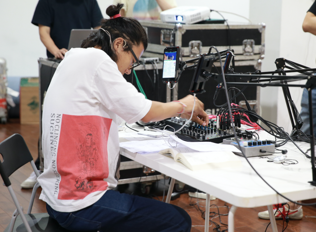 In the third part, the artist recites the text of John Cage‘s “Speech on Nothing” and remixes the live streaming in real time. The purpose of this is to discover the huge online data wreckage produced by a large number of individuals using new sound media, and to re-discuss the concept of nothingness.