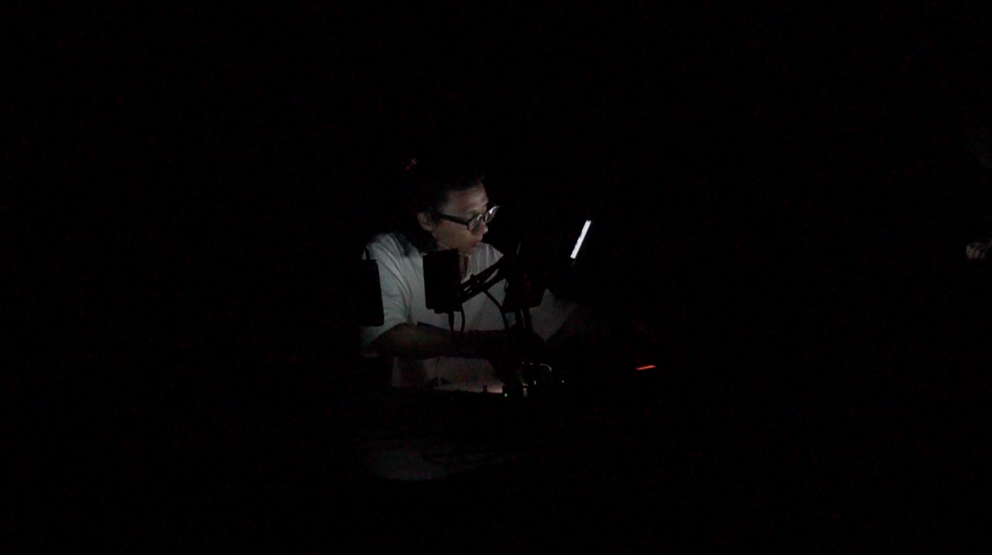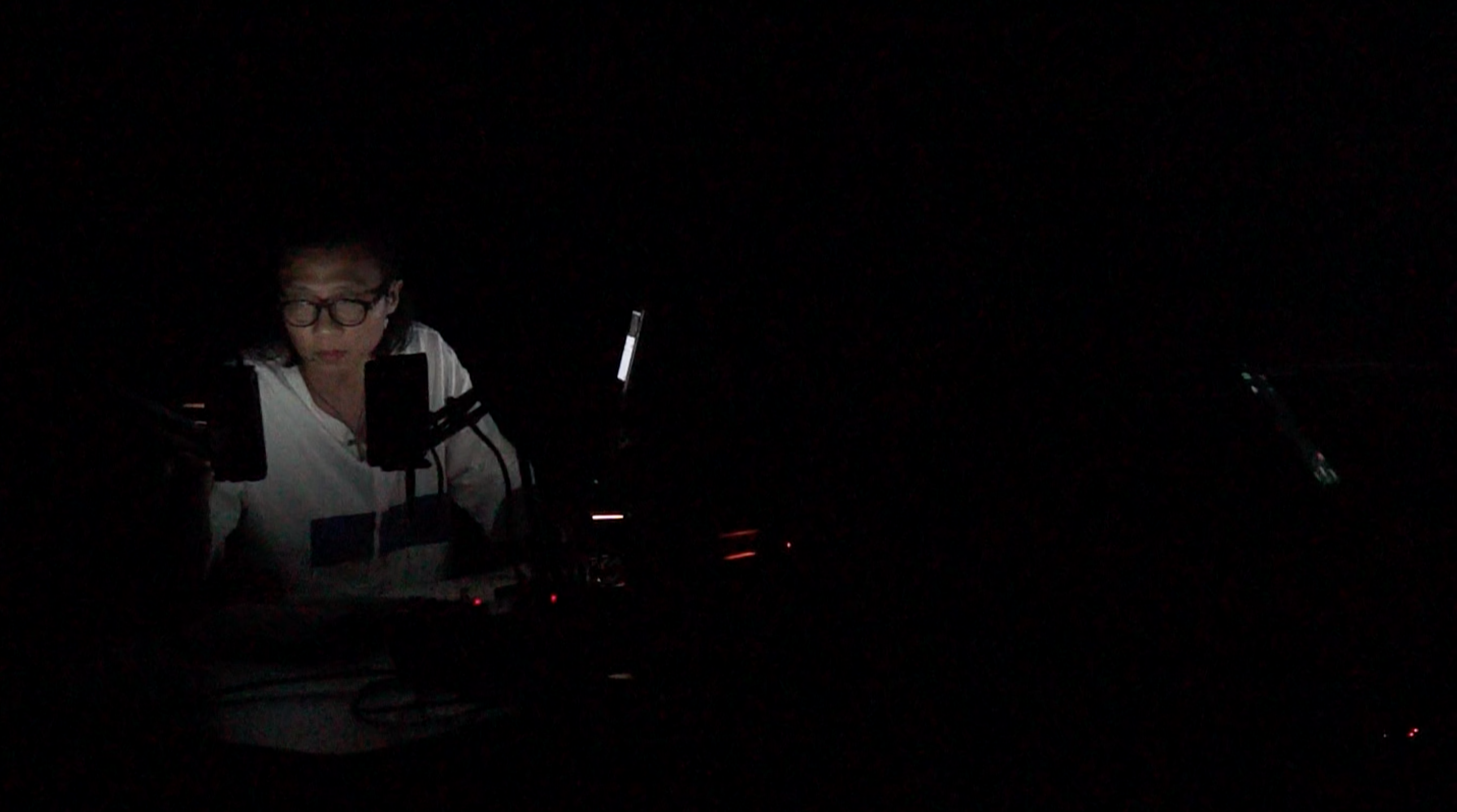 表演在全黑的环境下进行,只留有手机液晶屏的光亮。因此,这里并没有放上演出录像。网页下拉到底,可以聆听正常录音。